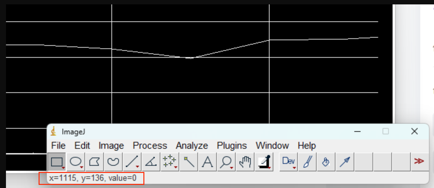 Edit→Invert将图片黑白颠倒,让原本的暗条带变为亮色,便于后续测量。 -