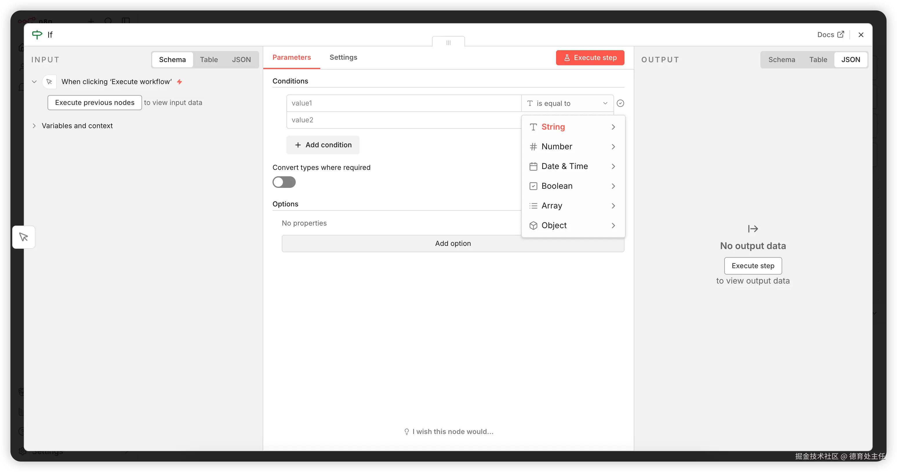 首先需要确定你要比较的数据类型,n8n 提供了以下几种常见类型: