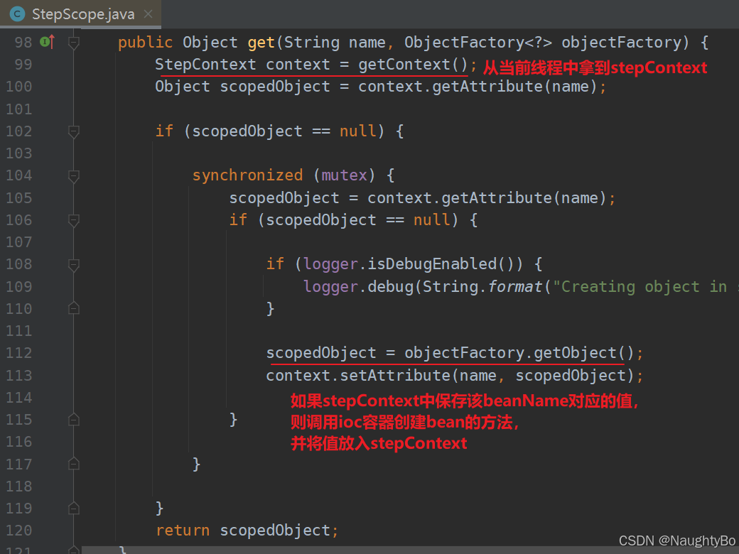 3、再看StepScope获取bean的逻辑