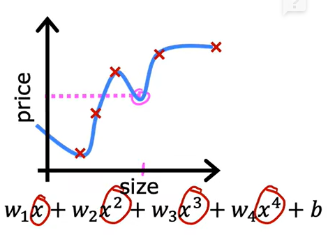 J ( w → , b ) = 1 2 m ∑ i = 1 m ( f w → , b ( x → ( i ) ) − y ( i ) ) 2 + λ 2 m ∑ j = 1 n w j 2 J({\overrightarrow{w},b})= \frac{1}{2m}\sum^m_{i=1}(f_{\overrightarrow{w},b}(\overrightarrow{x}^{(i)})-y^{(i)})^2+\frac{\lambda}{2m}\sum^n_{j=1}w_j^2 J(w ,b)=2m1i=1∑m(fw ,b(x (i))−y(i))2+2mλj=1∑nwj2