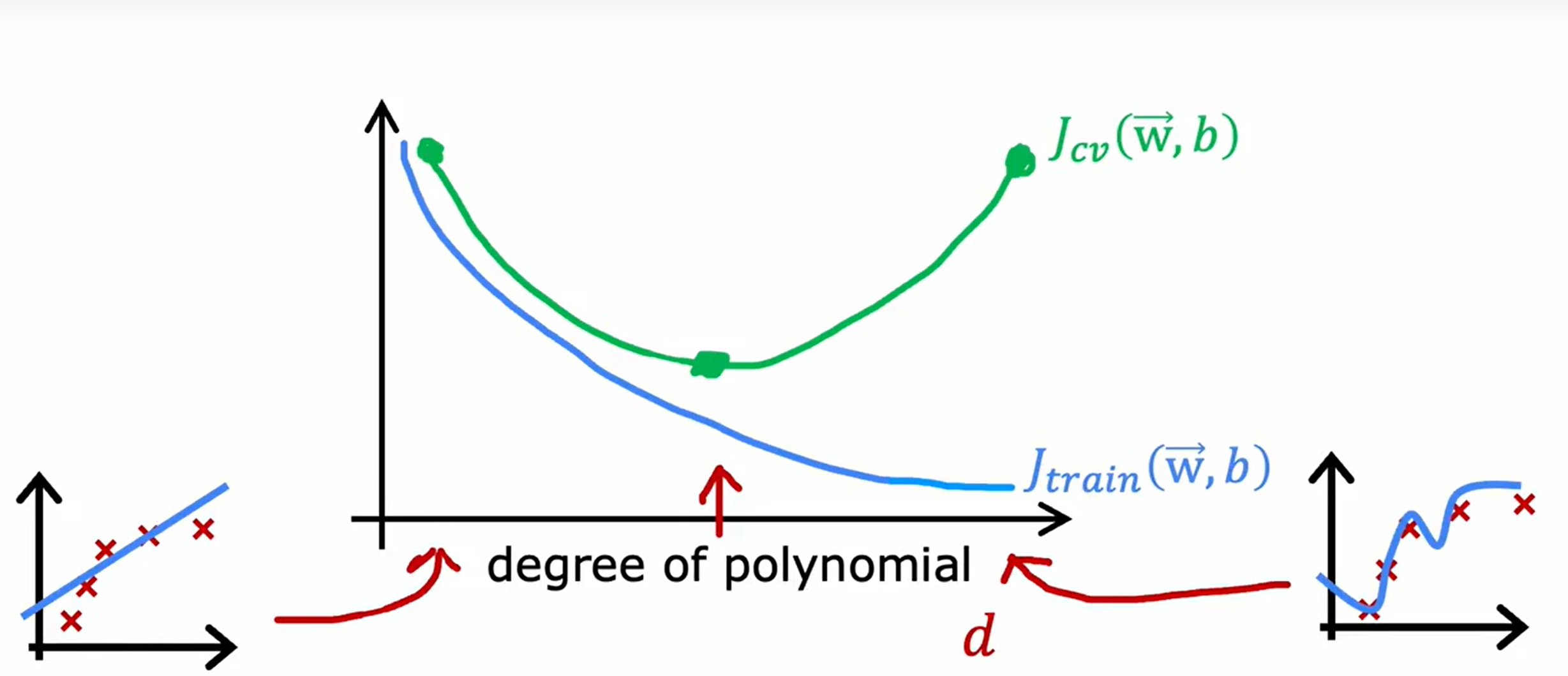 欠拟合: 模型不太收敛于训练集数据,具有高偏差