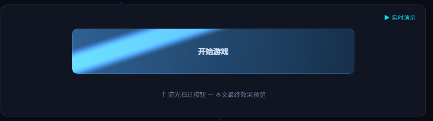 在游戏 UI 中,**流光(Shimmer / Sweep Light)**是一道明亮的高光带,从控件的一侧扫向另一侧,营造出金属质感或魔法光泽。常见于: