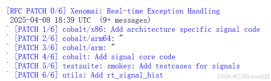 当你把patch集合发送出去之后,你在Xenomai社区邮件列表中,会观察到类似这样的情况: