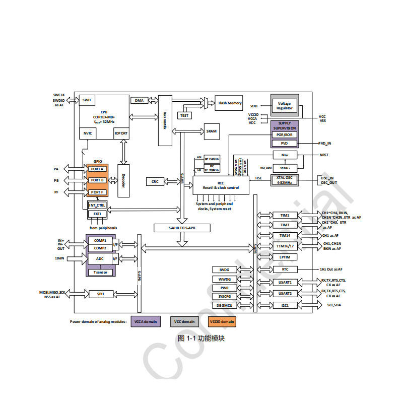 此外,PY32F003还集成了硬件CRC-32校验模块,可用于数据完整性验证;配备2个比较器,支持模拟信号比较及中断触发;并提供唯一标识符(UID),便于设备识别与管理。