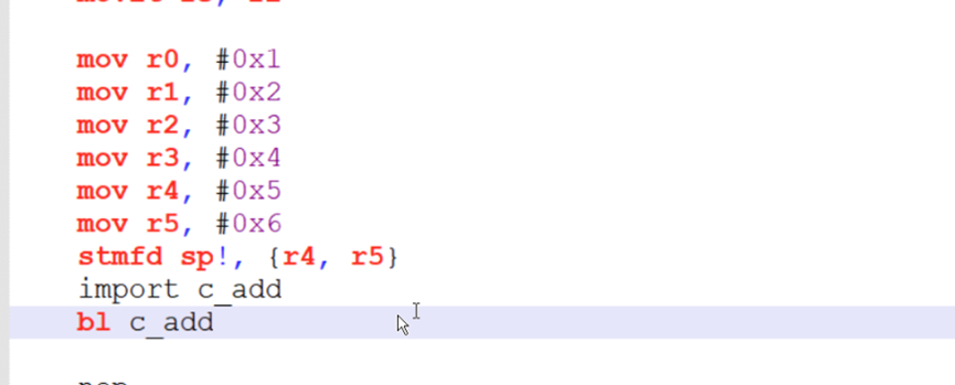 add r0, r0, r1 ;汇编中的注释用;号表示,