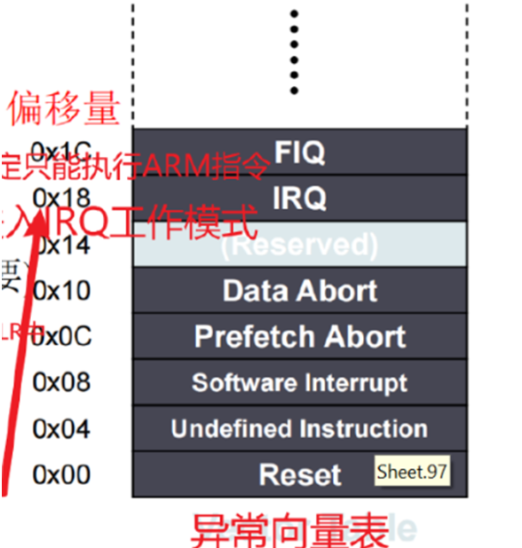这里要说明一下,进入向量表后,PC会跳转到相应的地址:
