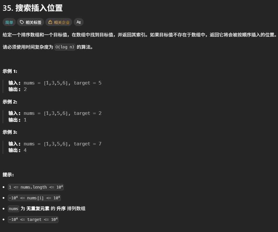 35. 搜索插入位置