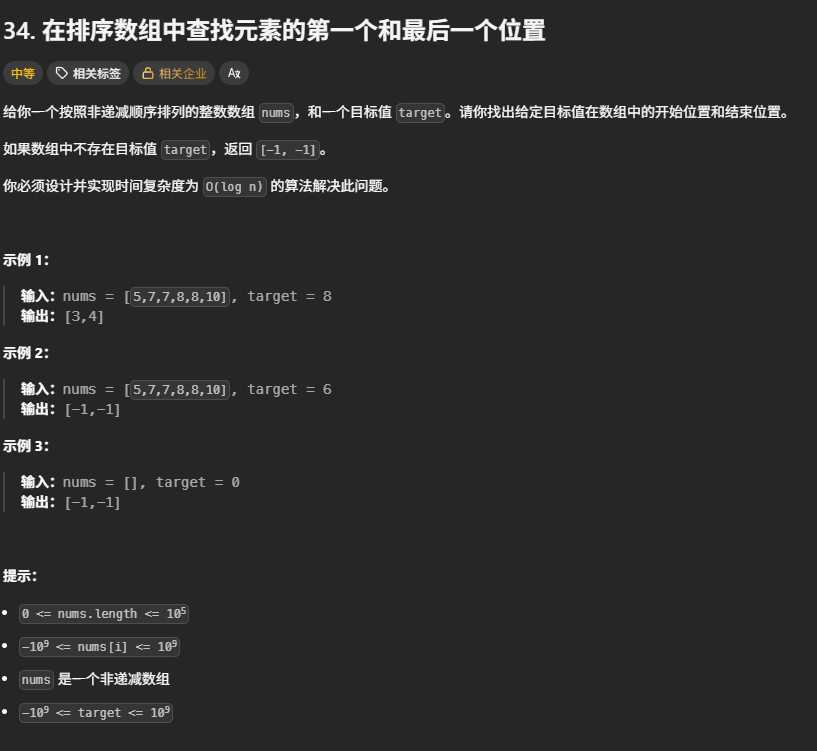 34. 在排序数组中查找元素的第一个和最后一个位置
