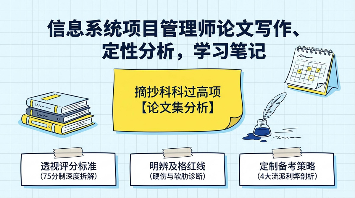 信息系统项目管理师考试 的论文写作提供了全面的备考指南,涵盖了从写作要求 到高分技巧 的核心内容。论文的评分标准 ,文章必须字数达标、切合题意,并具备真实的项目实践深度 。不同基础的考生,原创、改写与融合 三种备考策略,并推荐了"总分总"或"应答式"的写作架构 。重点介绍了新兴的绩效域论文 写作方法,通过系统思维 和素材提炼来展现管理能力。通过整合项目背景、技术方案与管理细节,可以构建出逻辑严密且具有个人见解的高质量论文。