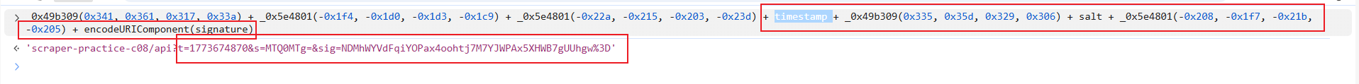 hash = CryptoJS["HmacSHA256"]('' + salt + timestamp, "https://www.spiderbuf.cn/web-scraping-practice/scraper-practice-c08");