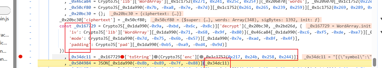 const _0x167729 = CryptoJS["AES"]['decrypt'](_0x20bc30, _0x2bd26d, {