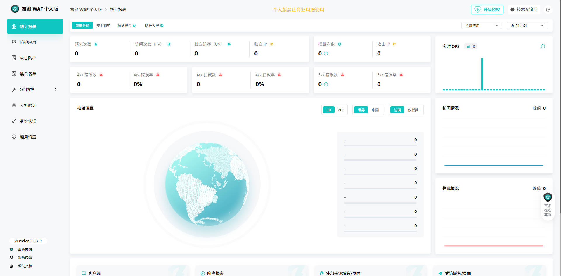 雷池(SafeLine)社区版是一款完全免费的 Web 应用防火墙(WAF),核心思路是通过 反向代理模式 接入流量,实现对 SQL 注入、XSS、CC 攻击等常见 Web 威胁的实时防护。