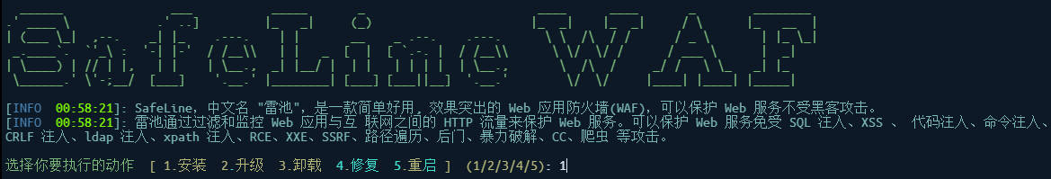 后续也可以执行这个命令来更新,卸载修复和重启SafeLine