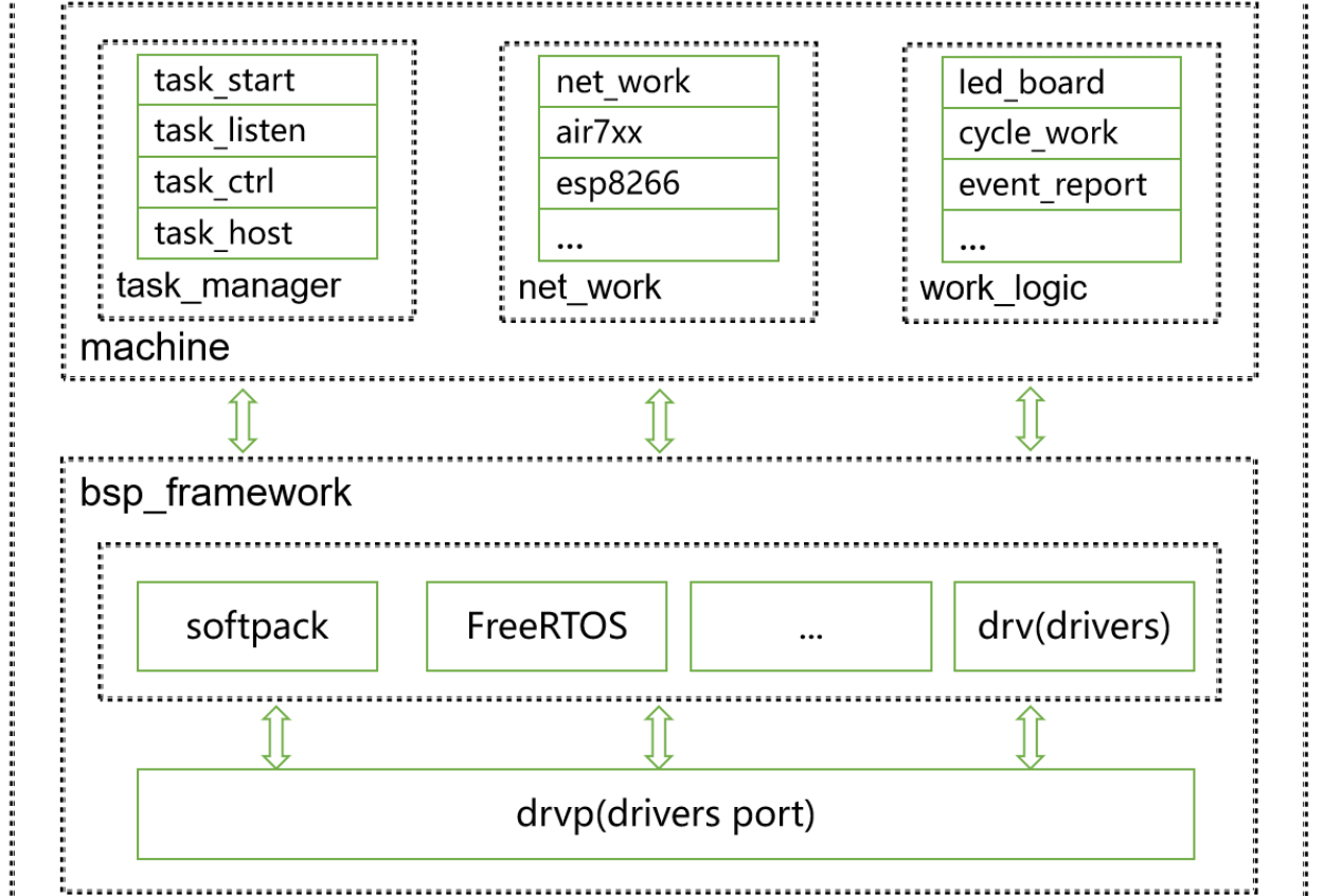 // drv (drivers) - 硬件驱动 // 例如:GPIO驱动、UART驱动、I2C驱动等 drv_gpio.c drv_uart.c drv_spi.c // drvp (drivers port) - 驱动移植层 // 针对具体芯片的适配代码 drvp_stm32f4.c // 针对STM32F4的移植 drvp_air7xx.c // 针对air7xx的移植