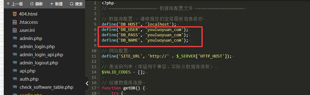 来到源码目录下,双击config.php文件,修改数据库信息然后保存,如图