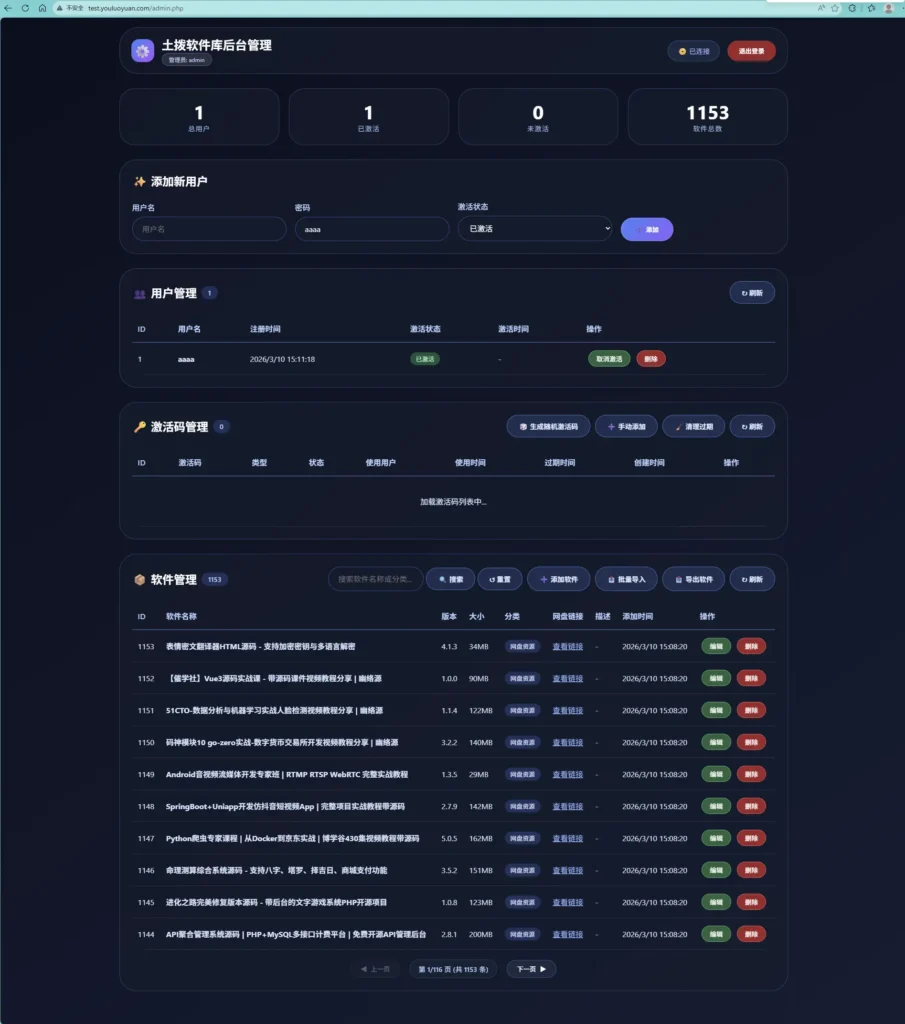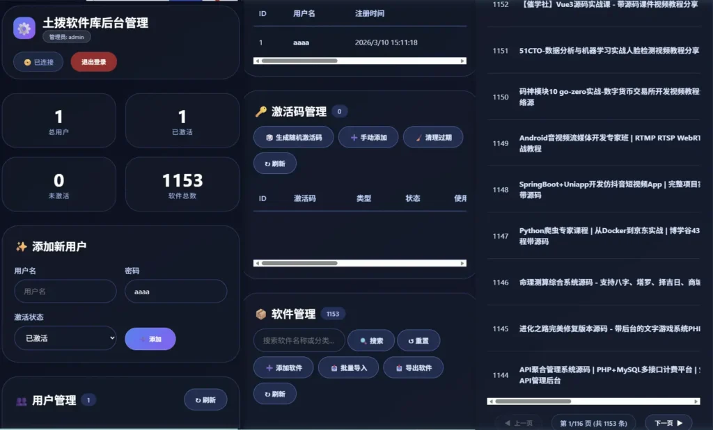 后台如下图,可以激活用户,导入资源