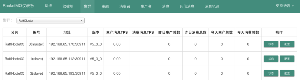 从整个配置过程中可以看到,虽然没有指定每个节点的角色,但Dledger集群自动将192.168.232.129也就是worker2上的broker服务选举成了master。