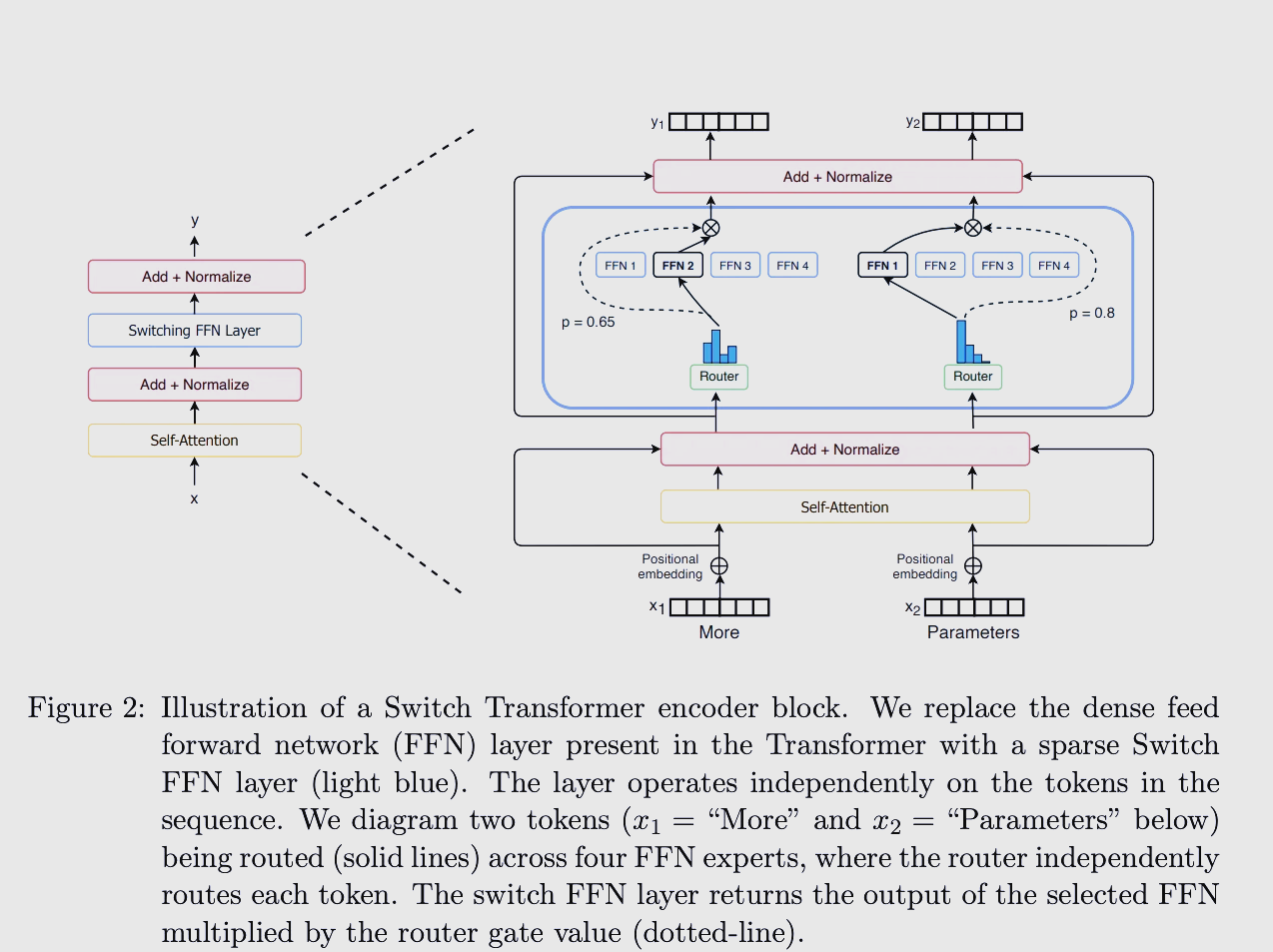 同时有一个 router,为每个 token 输出对各个 expert 的打分: