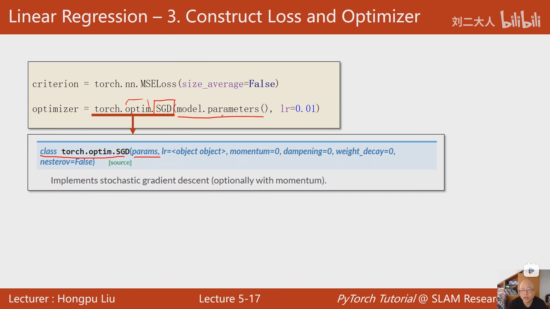 optimizer = torch.optim.SGD(model.parameters(), lr=0.01, momentum=0.9)