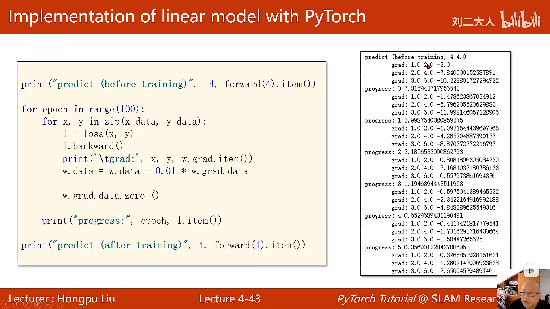 w.data = w.data - 0.01 * w.grad.data #更新权重