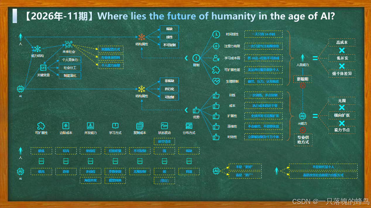这张图谱最珍贵的结论,是打破了 "AI 替代人类" 的焦虑:AI 不是要变成 "更聪明的人",而是要让能力变得丰饶;人类不是要被 AI 取代,而是要在新的能力分配格局中,找回自己的独特价值 ------ 那些只有人类才能拥有的创造力、共情力、判断力与责任感,才是我们在 AI 时代真正的立身之本。