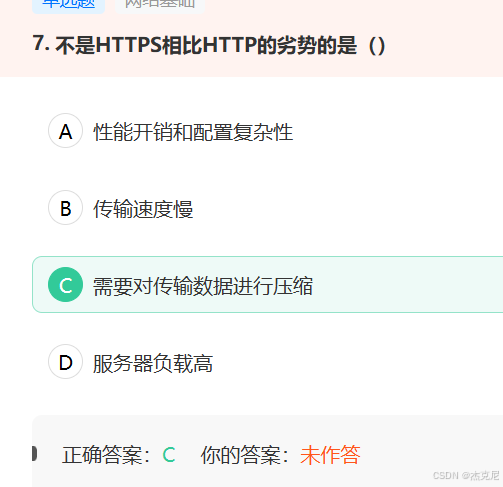 C. 需要对传输数据进行压缩:这不是HTTPS的要求。数据压缩是为了提高传输效率,减少带宽使用,但这与是否使用HTTPS无关。HTTP和HTTPS都可以通过压缩技术(如gzip)来优化数据传输。