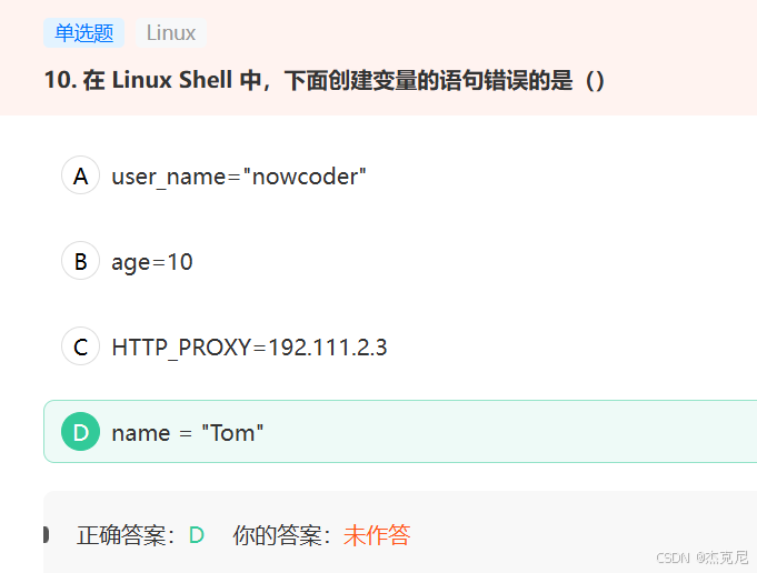 2在Linux Shell中变量赋值时,等号"="两边不能有空格,这是Shell的语法规则。