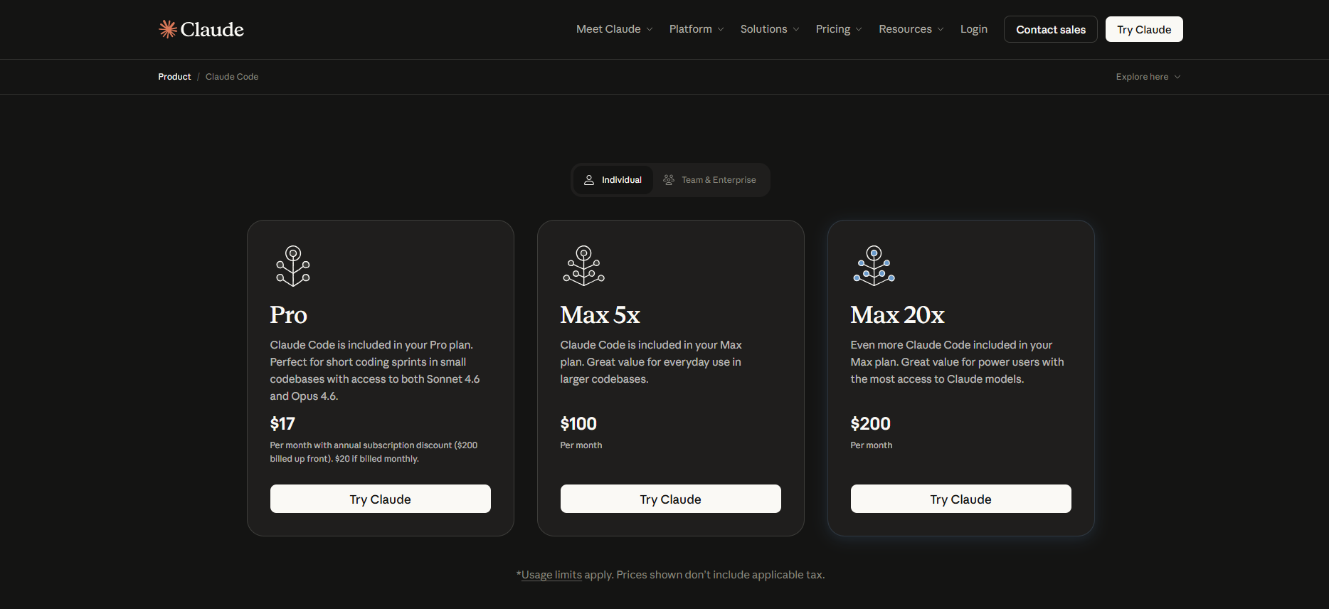 - 订阅 Claude 账户,有专业版、高级版、团队版或企业版