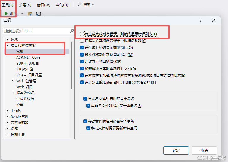 关闭额外的错误列表
