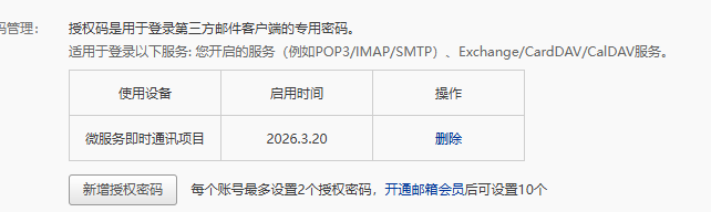 需要注意的是,客户端在连接邮箱服务器时,并不能直接使用邮箱的登录密码进行身份验证,而是必须使用邮箱授权码。