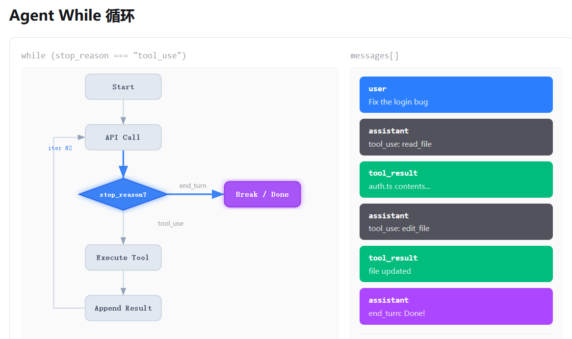 最简单的agent,就是一个while循环+一个工具