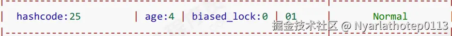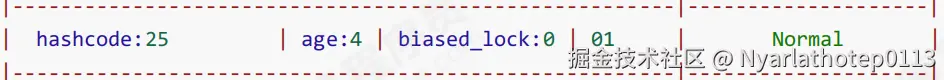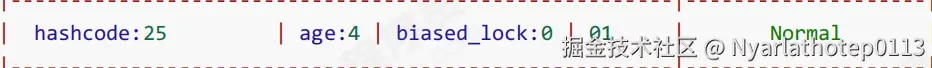 hashcode字段是JVM在对象内部维护的一个内部标识 。它是一个31位的整数(在32/64位系统中位置不同),也称为identity hash code。这个值是一个懒加载的,只有当JVM第一次需要用到这个内部哈希码时,才会计算并存入Mark Word:- 首次调用默认的