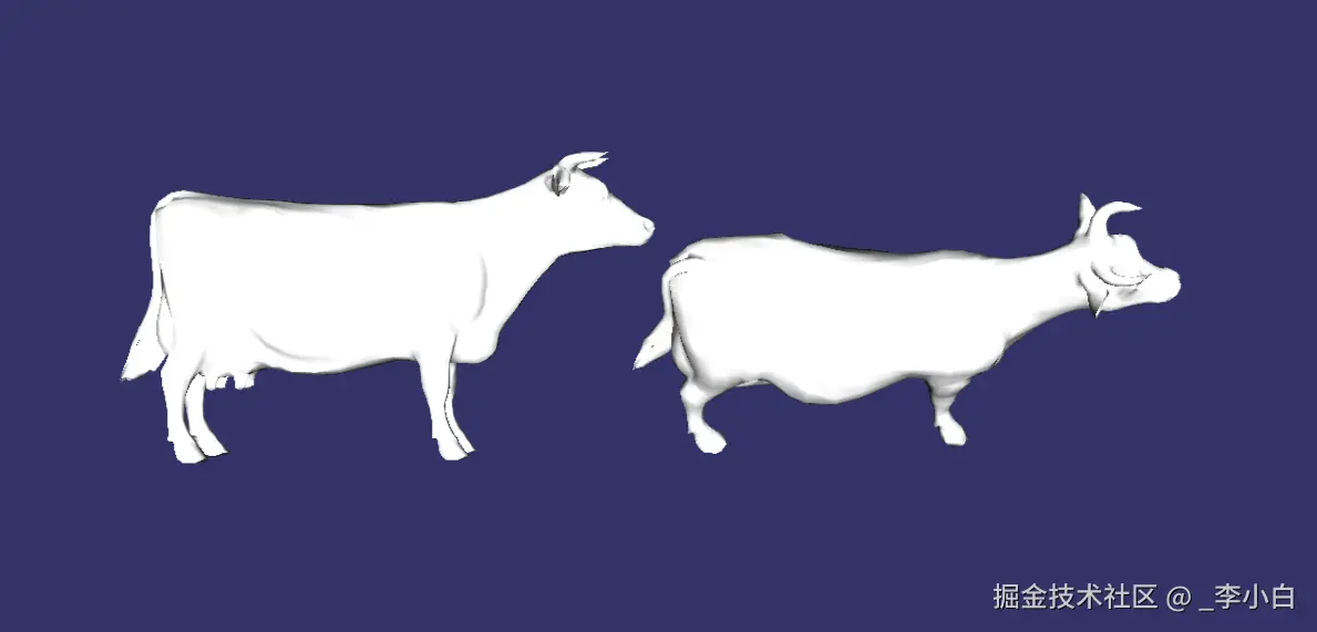 MatrixTransform会将自身矩阵与父节点矩阵叠加,计算出子节点的"世界坐标"; - 渲染线程根据世界坐标绘制模型,最终呈现"左侧缩小牛、右侧旋转牛"的效果。
