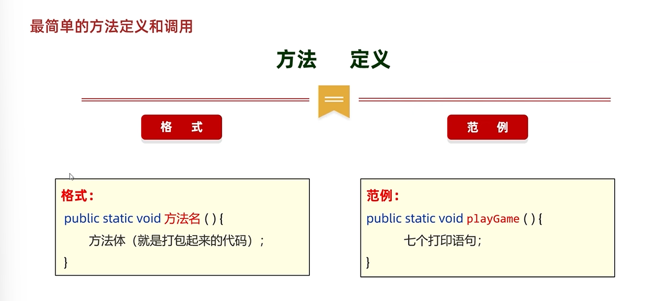 **方法的定义:**把一些代码打包在一起,该过程称为方法的定义