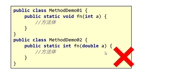 注意:方法调用时,参数的数量与类型必须与方法定义中小括号里面的变量一一对应,否则程序将报错。
