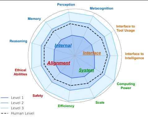 在AGI的迷雾中,最紧迫的任务是建立一个能够定位当前技术、量化现有局限、并指引未来方向的分层框架。不同于以往模糊的"强AI"与"弱AI"二分法,我们提出三个递进的层级,每一级都标志着智能在自主性、泛化性和创造性上的质变。
