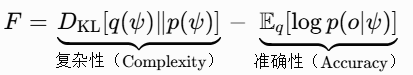 最小化 F 等价于最大化模型证据(model evidence)并最小化复杂性。