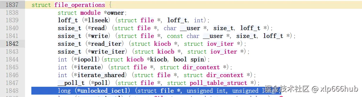但现代内核为了提高并发性能去掉了 BKL,回调函数改名为 unlocked_ioctl。这意味着,我们必须自己负责并发安全的加锁逻辑。 再看我现在使用的 v5.10.198 版本: