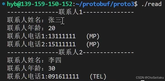 更新contacts.proto,我们可以将phone_number提取出来,单独成为⼀个消息: