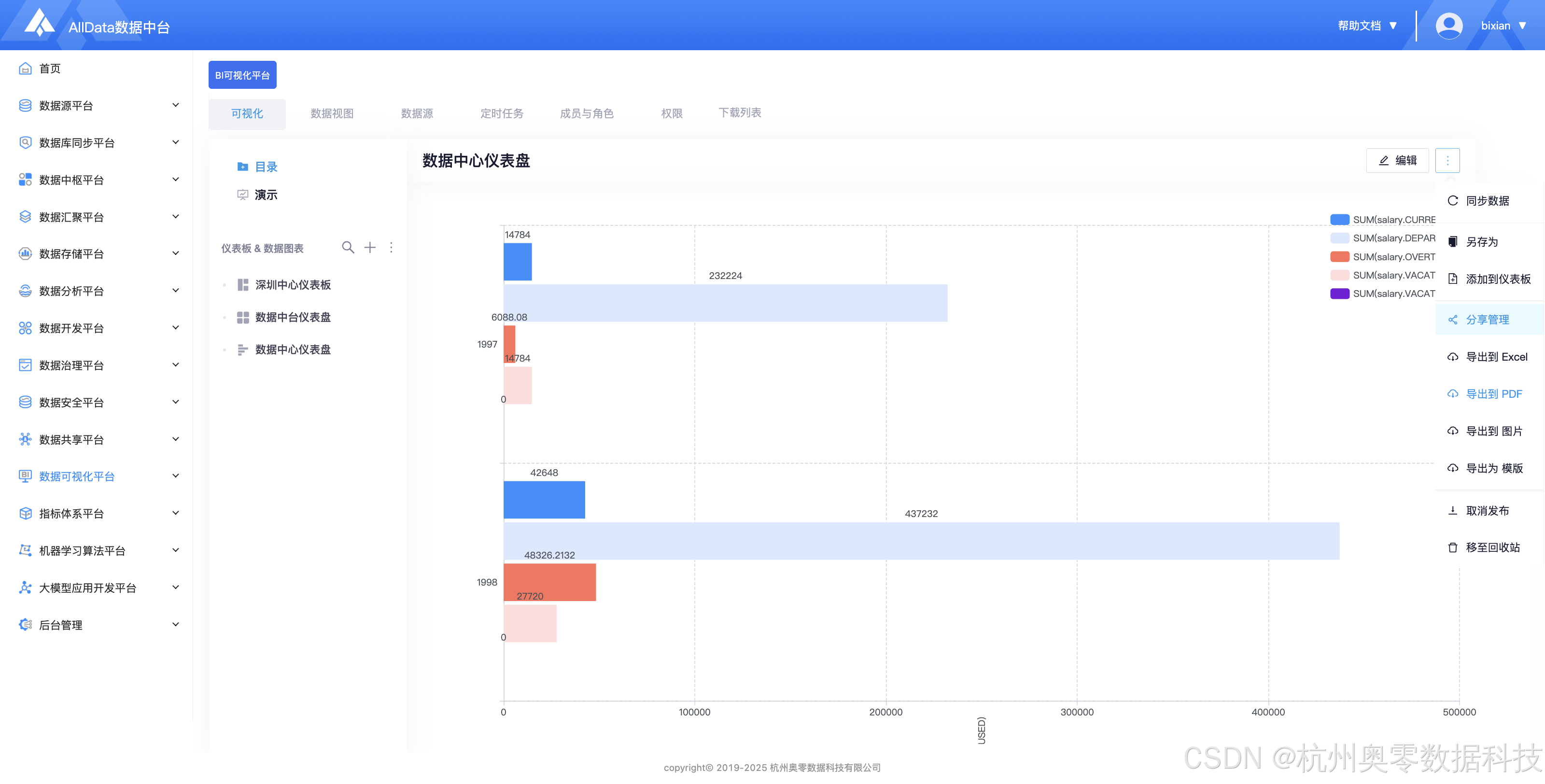 ✅ 所有内容均可通过安全的链接或嵌入代码进行分享,并配合AllData数据中台强大的权限体系,实现从仪表盘访问、到数据行、乃至敏感字段级别的精细化权限控制,确保"正确的人看到正确的数据",从而在安全的前提下,推动基于数据的跨部门高效协同与决策。