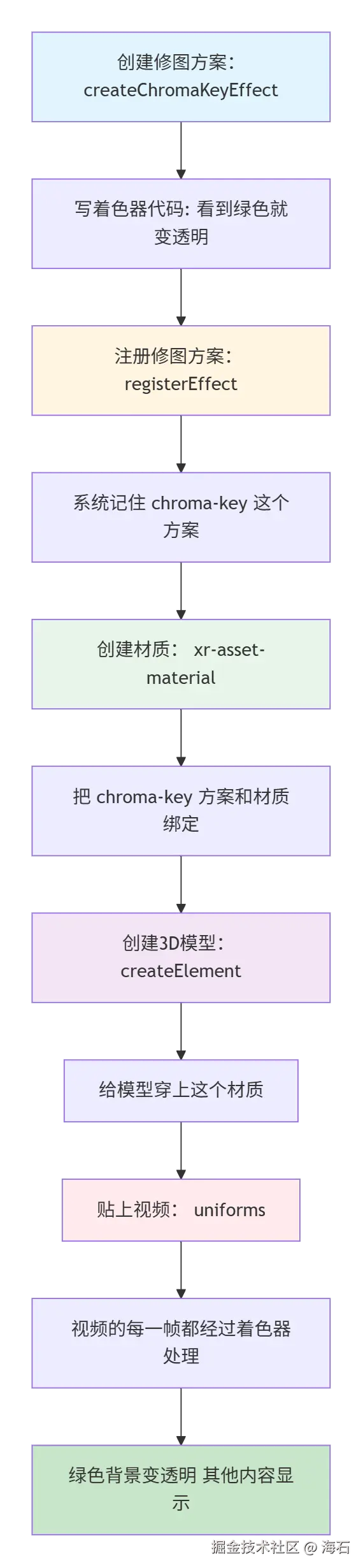 着色器就像一个超级快的修图师,把视频的每一帧图片都检查一遍,把绿色的像素变成透明,然后把处理好的图片贴在3D模型这块"布料"上,纹理材质就是这块布料和修图师的组合