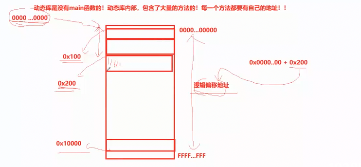 - 进程的虚拟地址空间角度 : 动态库在编译时,不是固定在某个虚拟地址的。它假设自己是从地址 0 开始的,里面所有函数、变量的地址都是相对于基址的偏移量。例如:puts 距离库起始地址的偏移 = 0x1234,printf 距离库起始地址的偏移 = 0x5678库内部的跳转指令,都是基于这个相对偏移,所以这个地址也叫做逻辑偏移地址。进程加载库时,只要给它一个"基址",它就能运行,当动态库被加载到某个进程的共享区时,内核给它分配一个虚拟基址(比如 0x7ffff7a00000)。库内部所有函数的真实虚拟地址 = 基址 + 偏移量,所以库可以被加载到任何进程的任何虚拟地址,因为它内部只用偏移,不关心基址,这就是动态库的核心。这是在进程的角度来讲的,因为是在进程的虚拟地址空间中。
