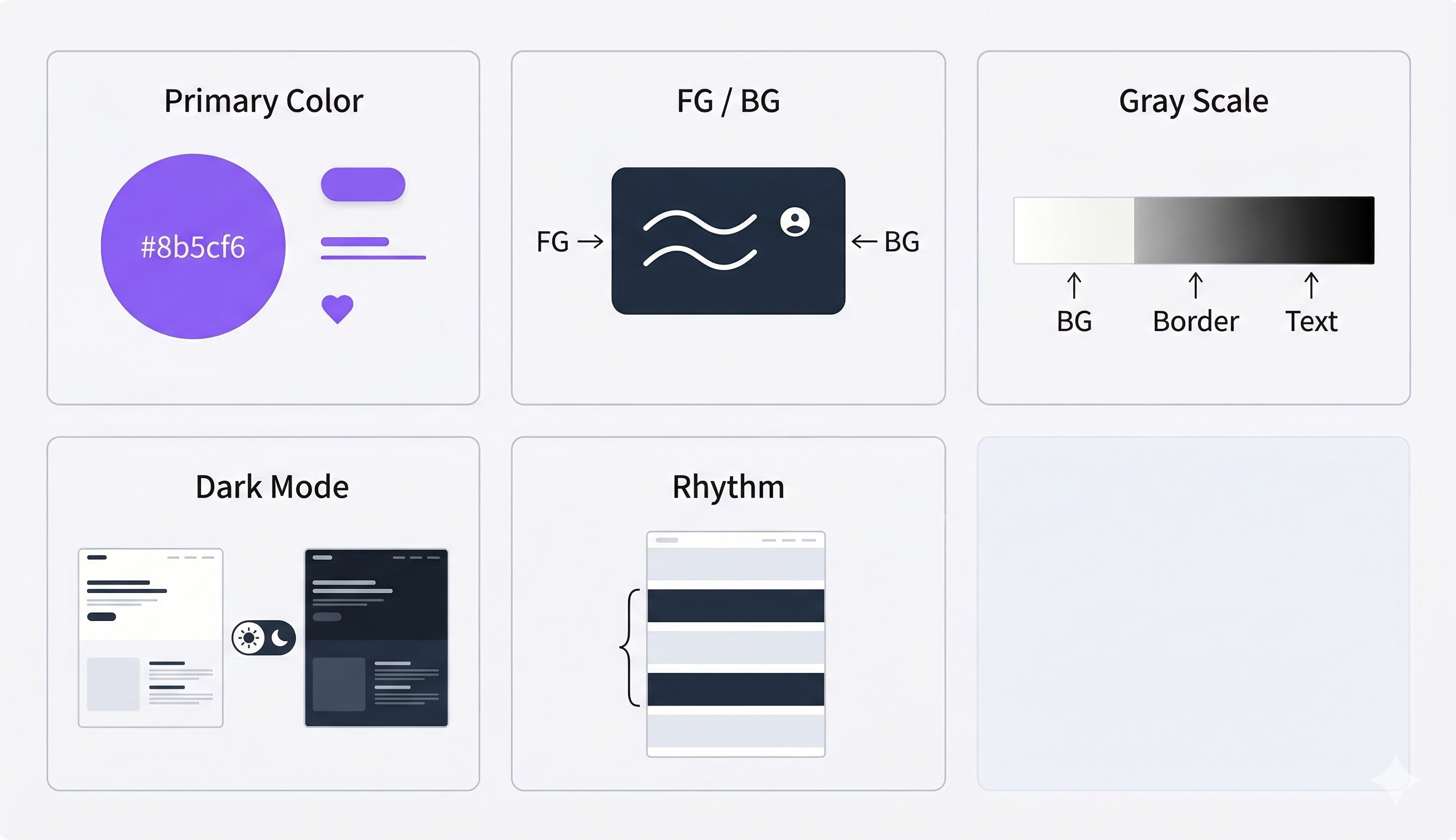 | 灰阶 | Neutral / Gray Scale | 一组从白到黑的灰色,用于文字、边框、背景等不需要强调的地方 |