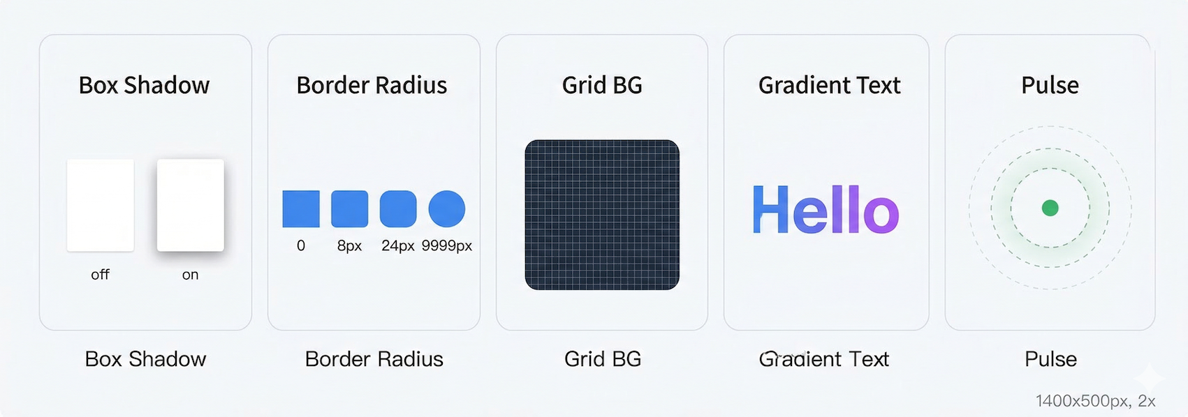 | 渐变文字 | Gradient Text | 文字颜色不是单色,而是渐变的(用 background-clip: text 实现) |