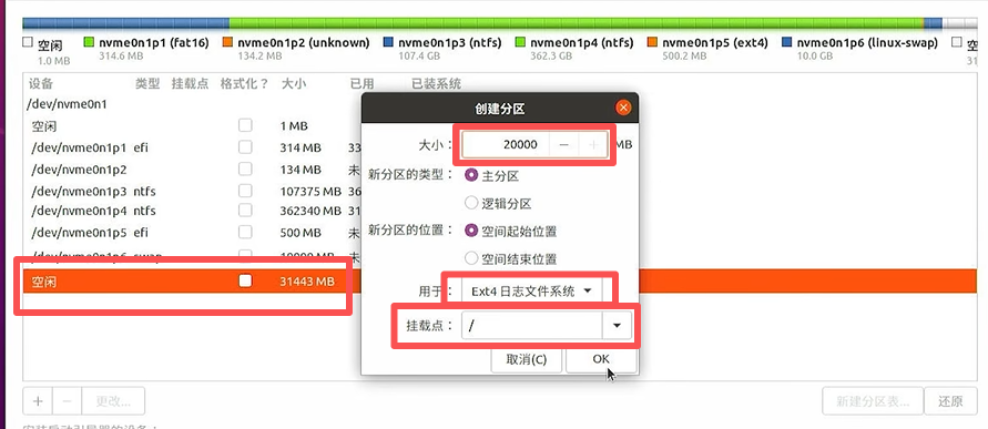 (下一章里我将详细讲解如在Ubuntu里检查实际分区并根据自己的需求进行分区的调整)