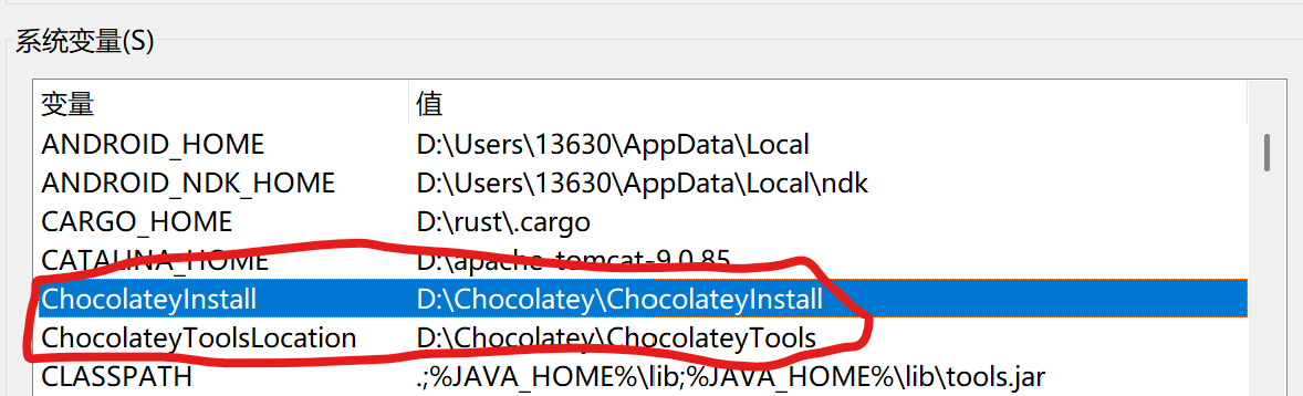 我的配置为:D:\ChocolateyChocolateyInstall对应ChocolateyInstall