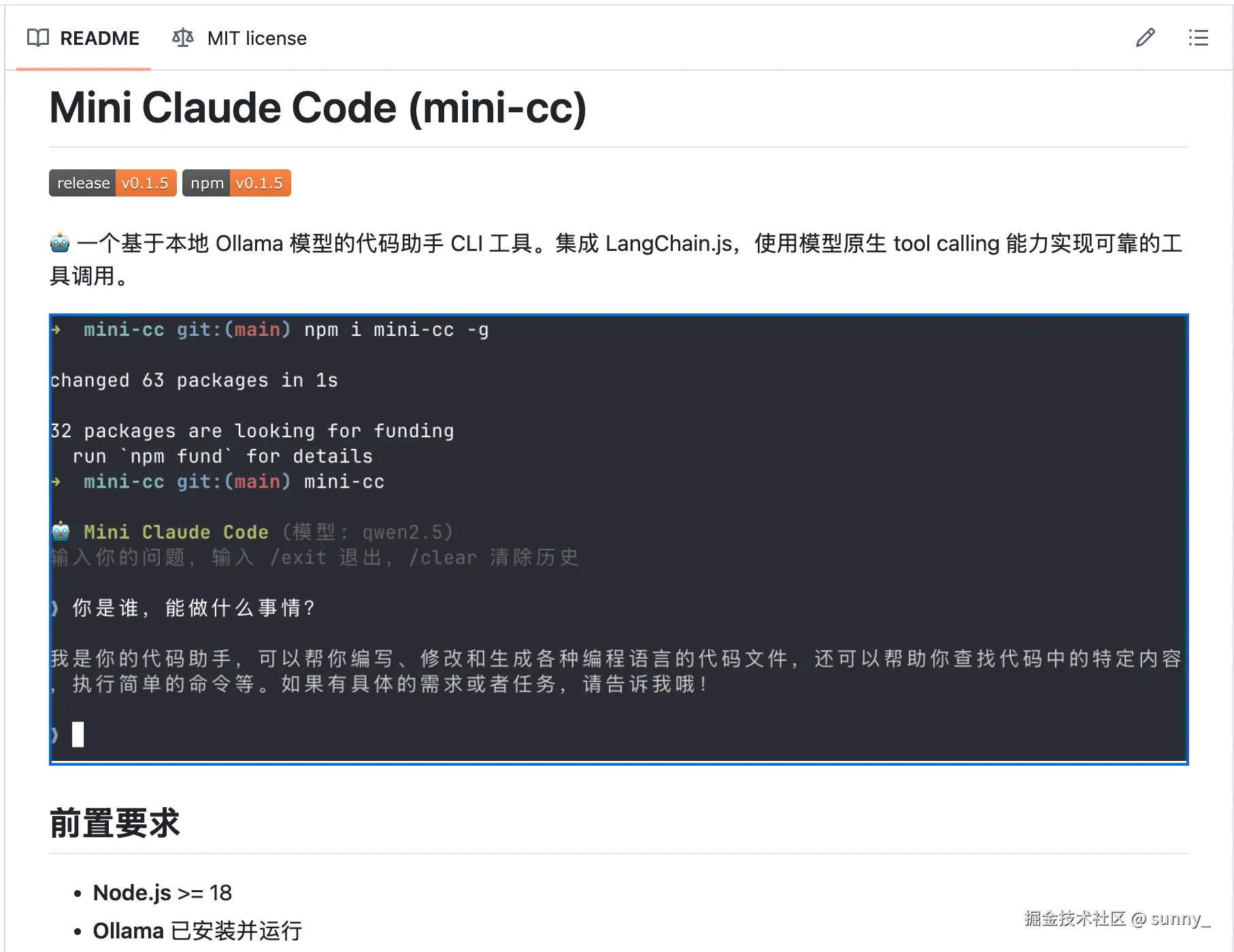 于是我开始了这个项目------mini-cc(Mini Claude Code)。目标很简单:用最少的代码,实现一个能读写文件、搜索代码、执行命令的 AI 编程助手。不用云端 API,完全基于本地 Ollama 模型,跑在命令行里。