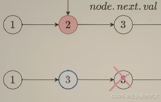 node.next=node.next.next就可以删除列表了,只是赋值val加next转移