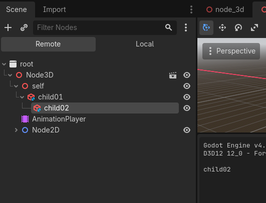 godot与其他游戏引擎不同,提供了较便捷的层级访问接口,可以快速定位到对应节点。