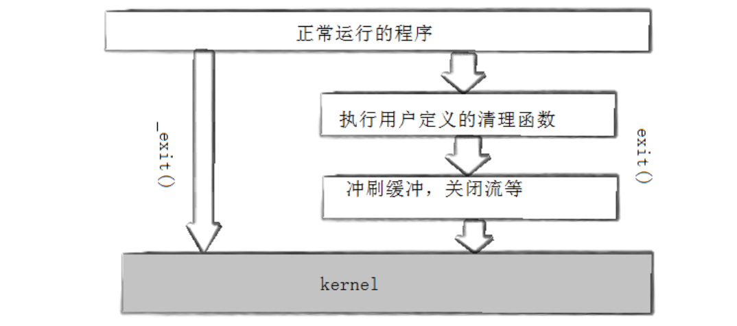 通过本图我们可知,exit的底层封装了_exit,只是在_exit的基础上添加了刷新缓冲等功能